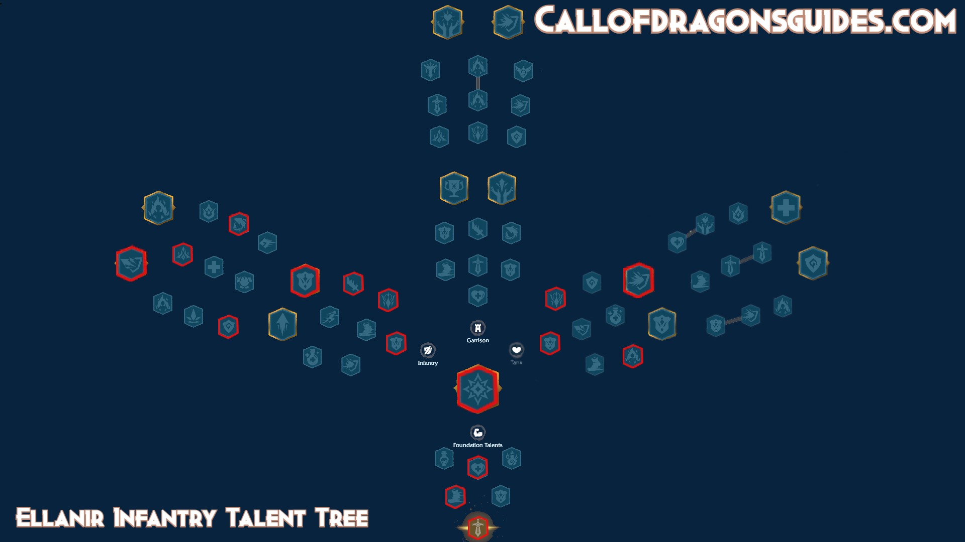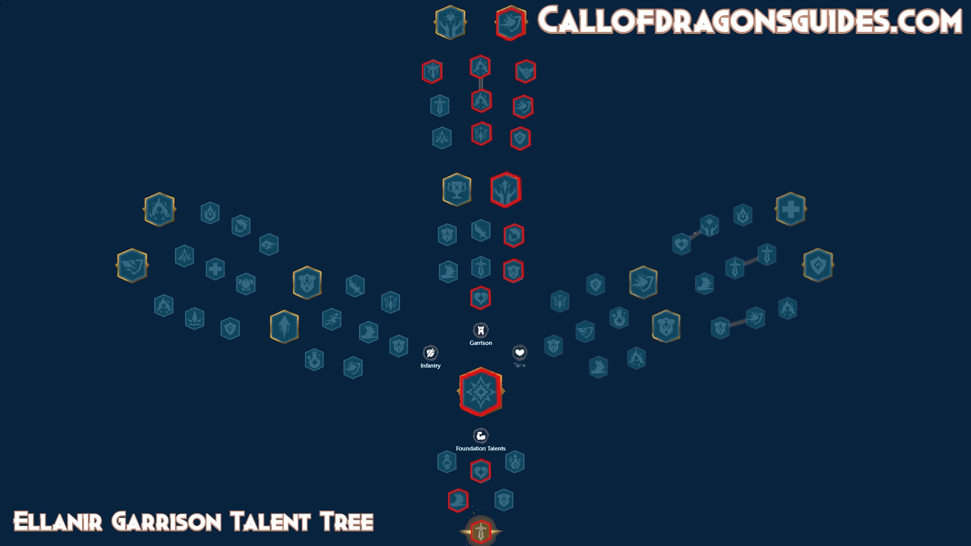 In Call of Dragons, Ellanir is a legendary Infantry hero. She has the Infantry, Garrison, and Tank talent trees.
