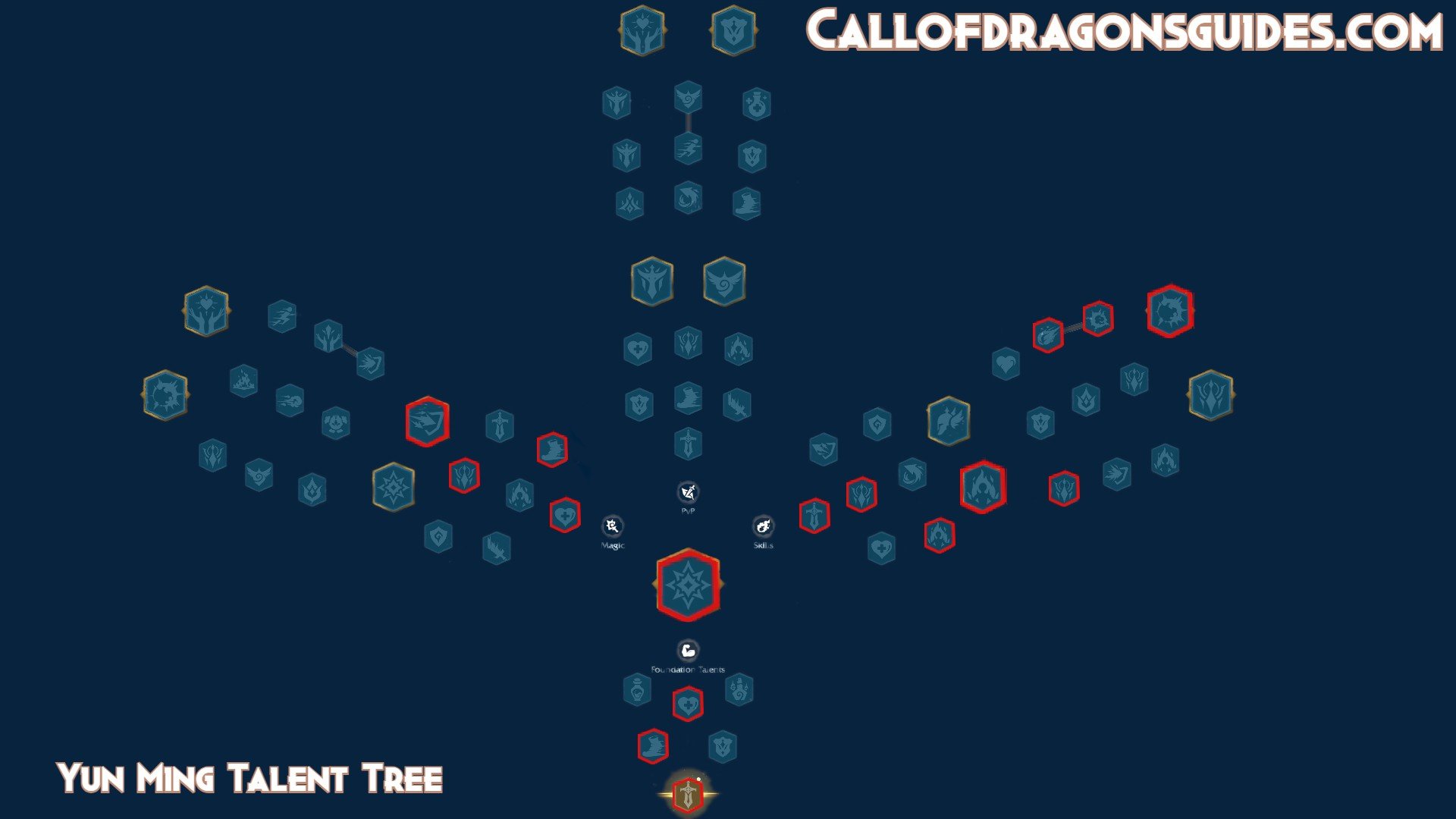 In Call of Dragons, Yun Ming is a legendary mage hero. He has the Magic, PVP, and Skill talent trees.
